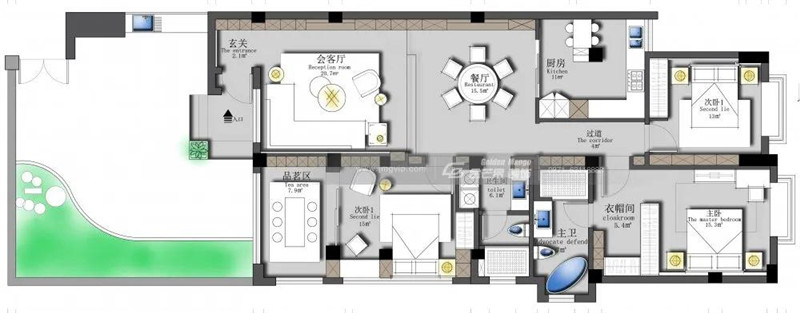 此案例是位于安寧太平萬輝星城的一套平層戶型,室外帶花園,環境安靜、悠閑,采光良好??臻e的時候在院子里曬曬太陽、聽聽鳥語,也是一件美事。