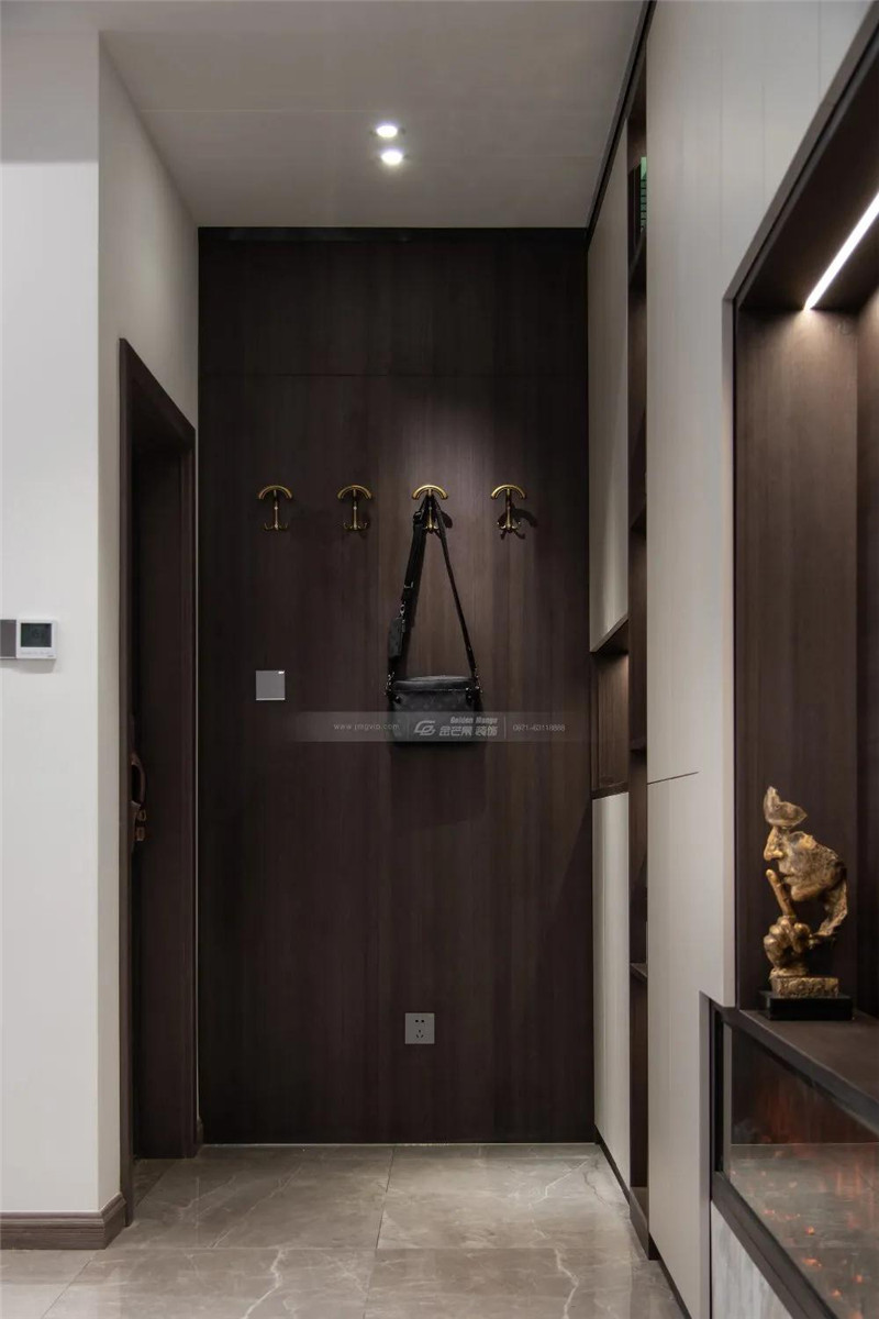 整體做到頂,沒有任何修飾卻大氣品質感自現。金屬掛飾做掛衣處理,進出門之間順手取放東西,方便自如。