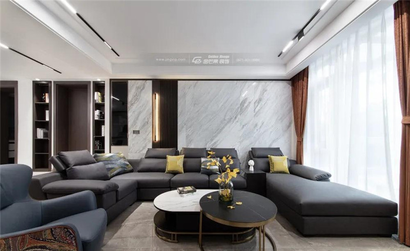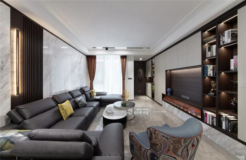業主周先生是個很注重生活品質的人,大家看到客廳柜體上設置了很多開放格,除了增加空間層次感,業主還購置了很多有意思的小擺件,這么熱愛生活,當然也不會被生活辜負啦~