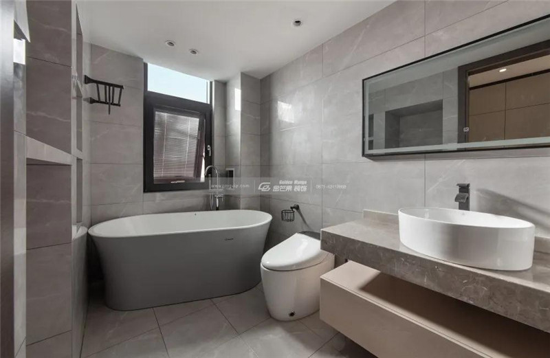 淋浴房在內側做了干濕分離的設計,保證了動線的流暢的同時也不影響浴缸和馬桶區域的視野。