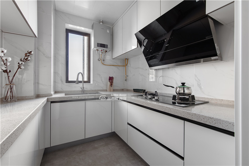 白色的廚房可以在視覺上起到開闊空間的作用,設計師為李先生一家選用的都是有質感、容易清潔打理的材質,既讓空間明亮溫馨有格調,又避免了難以打理的尷尬。