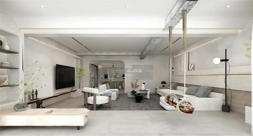 粗獷的仿原始建材和溫柔精致燈帶的結(jié)合,自然與時尚的碰撞。