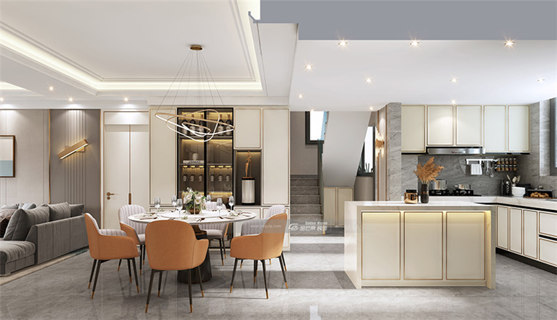 開放的餐廚設計,大氣怡然。有品質感的材質體現(xiàn)華麗優(yōu)雅的空間感,明艷張揚高級的家居品質。