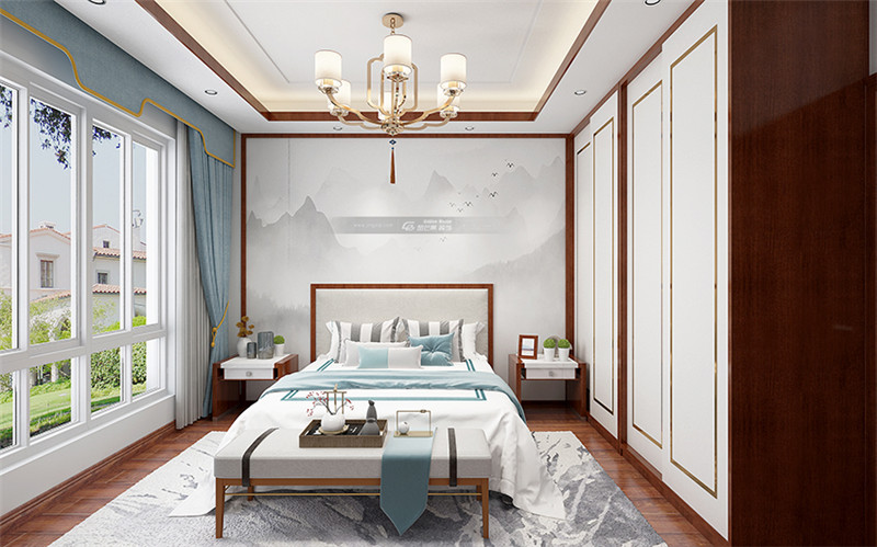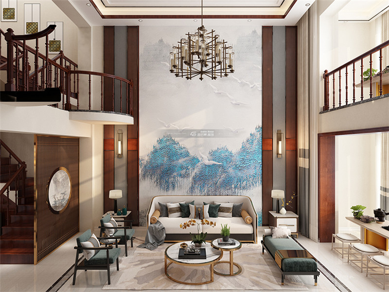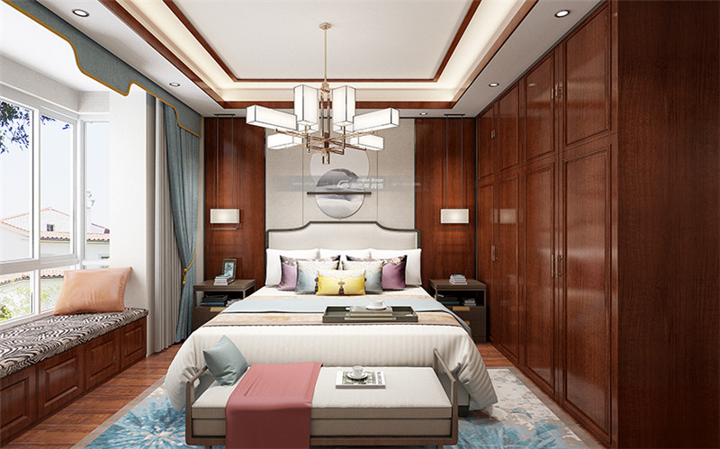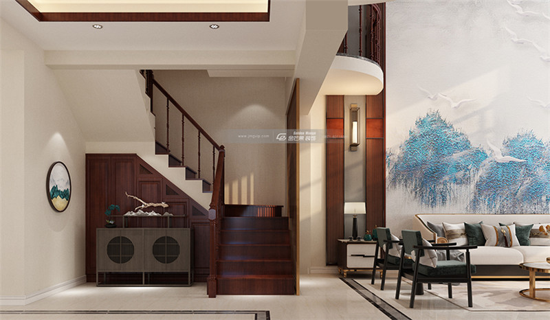 此套案例主要體現(xiàn)的是沉穩(wěn)、大氣的新中式風格。主要運用中式里面最具代表性的紅木作為主要木材原料,使其貫穿整個空間,賦予每個角落典雅的氣息,充分展示新中式的雅韻、魅力。
