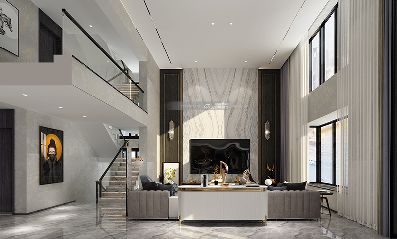 本案是一套400m²的別墅,大空間的設計手法讓整套房子充滿高級感和精致感。自由、肆意的空間,通過燈光、材質、空間布局的打磨,極具現代藝術氣質,是生活藝術感和高級感的彰顯。