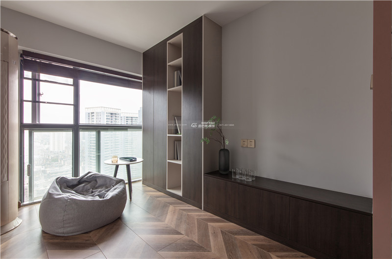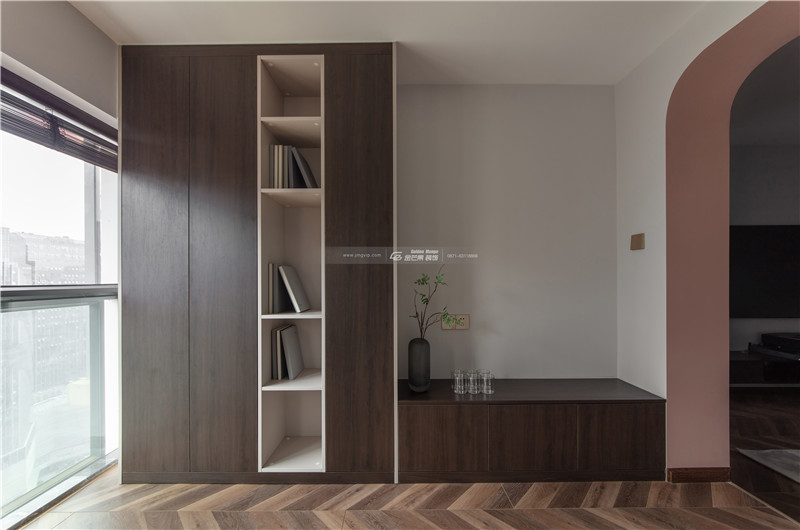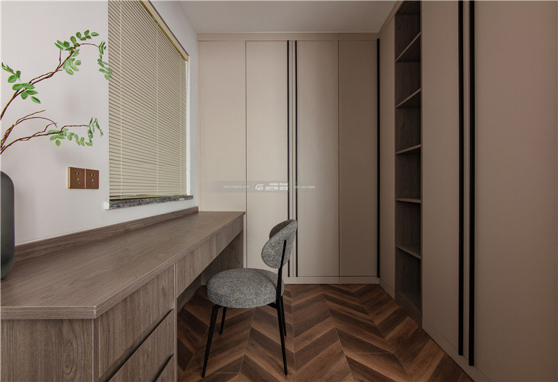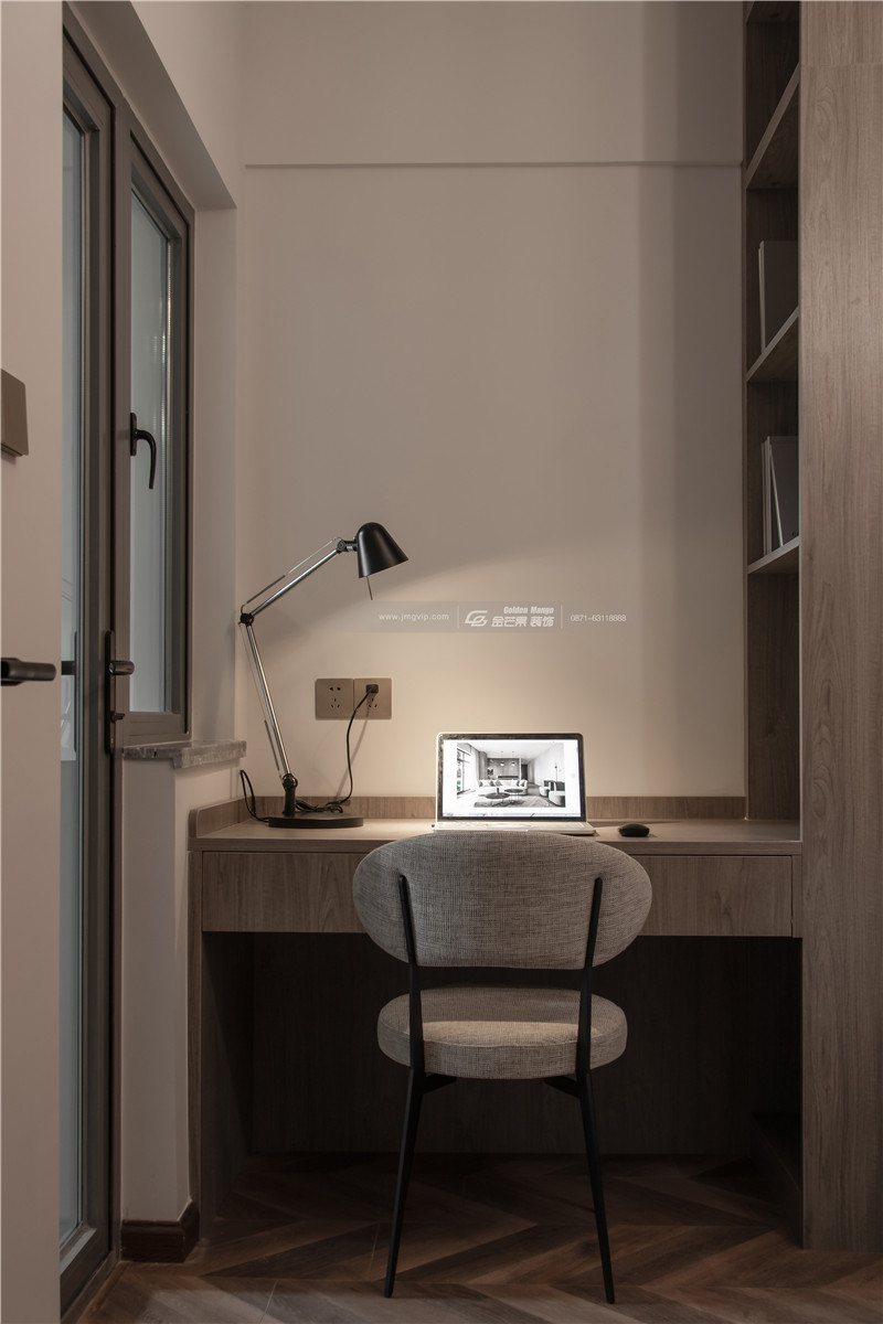 木材的書(shū)柜顏色和整體空間呼應(yīng),細(xì)膩安靜的感覺(jué)給屋主一個(gè)放松、自在的舒適空間。
