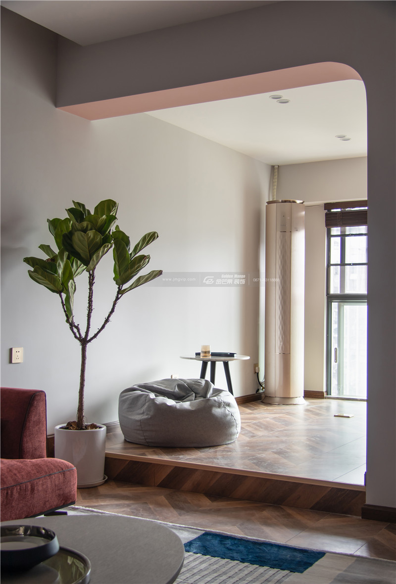 運(yùn)用拱形的弧度讓空間更顯溫柔,上淺下深的顏色空間感很強(qiáng),且對(duì)比的顏色對(duì)比之中展現(xiàn)獨(dú)特的家居魅力。地板上的花紋和顏色和整體基調(diào)搭配得當(dāng),增加活潑、明媚的顏色。溫柔、嫵媚氣質(zhì)太驚艷了。