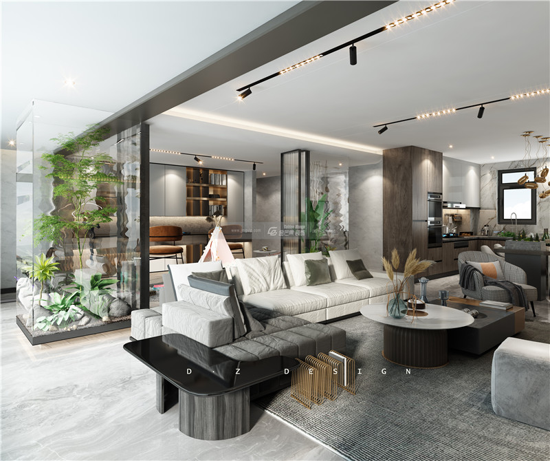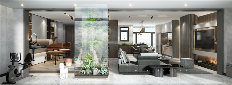 采用在房間內(nèi)創(chuàng)造花園景觀的一種方式,將綠植作為最大的裝飾元素,和灰色的空間格調(diào)相結(jié)合,仿佛置身于林中,喚醒自然的氣息。