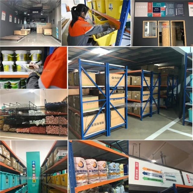金芒果設有獨立輔材配送中心,科學分類碼放,確保材料精準出入庫。
