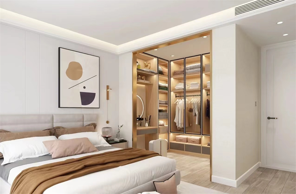 若是遇到一些特殊的戶型,也不必擔心,幸福金芒果裝飾在這溫馨建議您,一定要利用好這段動線,可以在走廊兩側定制通頂式的衣柜,這樣每次步入房間,都會經(jīng)過自己魅力精致的衣帽間啦,而且左右兩側空間也變得更豐富,可以容納更多的衣物!