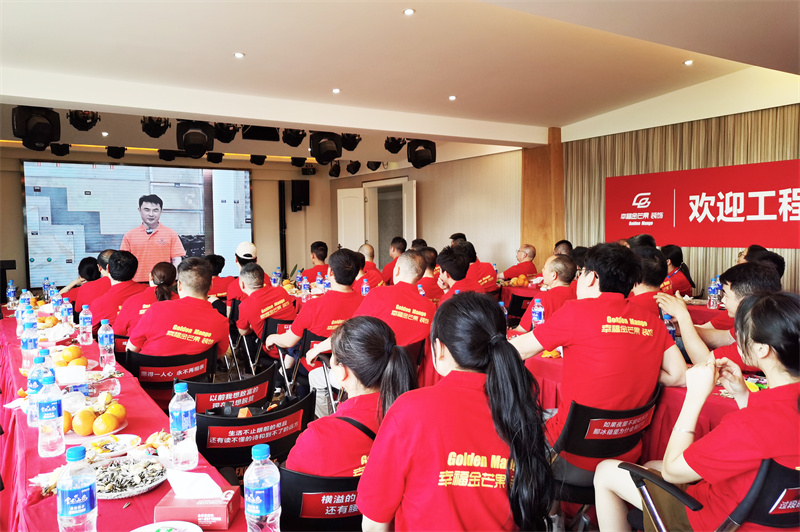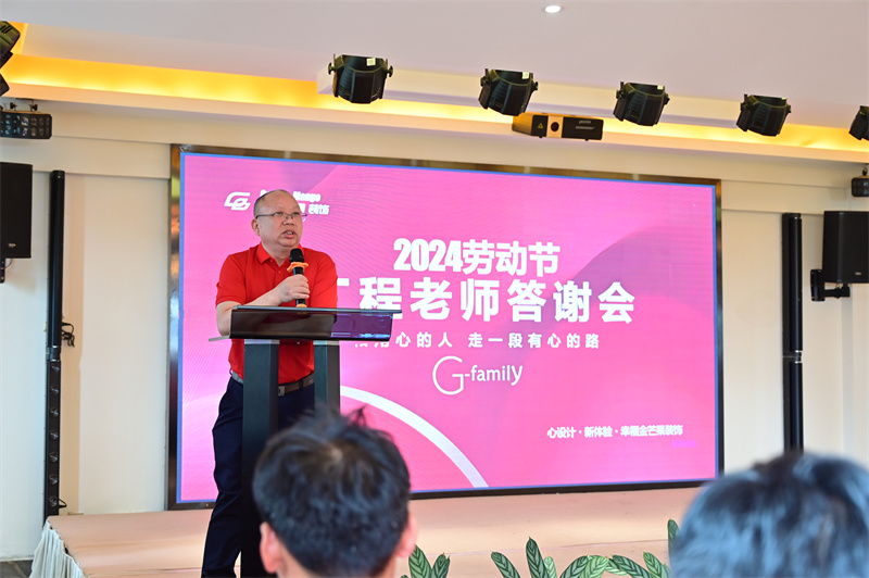 答謝會現場,總經辦領導上臺致辭,感謝工程老師們的精工細作,為金芒果打造了一個又一個高品質、好口碑的匠心工地,金芒果也會聚焦一線工地,關注工程老師們的切身需求和工地品質,讓大家的匠心精神得以充分的展現。